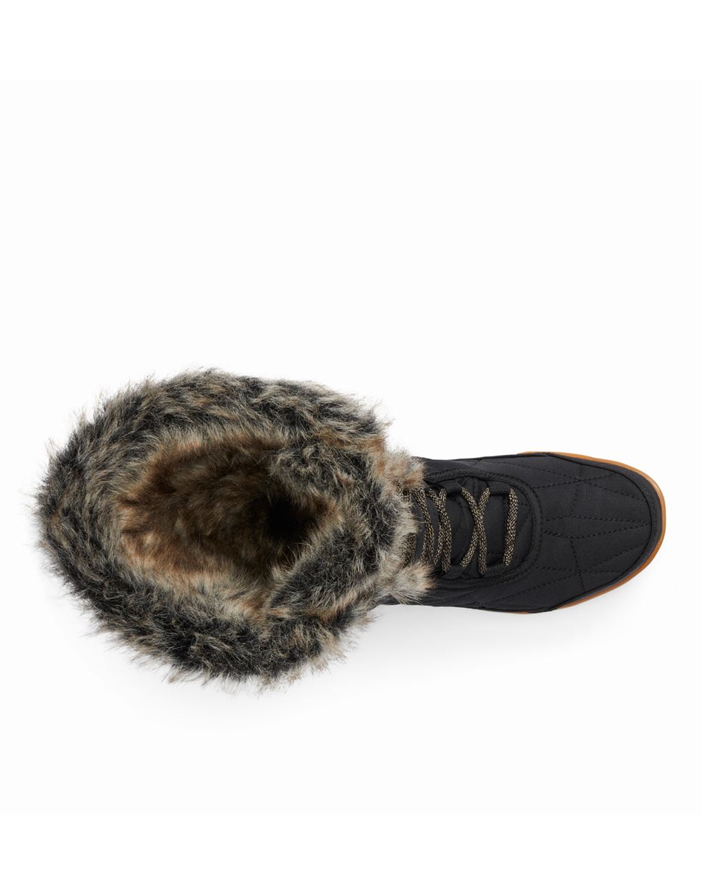 Waterproof woven synthetic textile with faux-fur collar and tongue lining